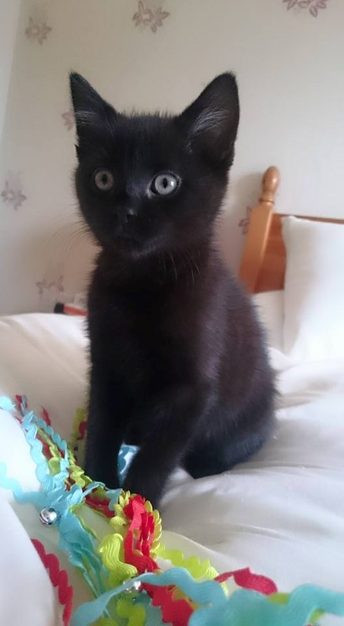Elsa, is a black female 10 week old kitten she has to go to a home with no young children as she has been pulled about with young children in her short life even thou she loves to play she still getting over getting pulled about she’s a real wee live wire who plays constantly Please phone Linda on 01382 330457 ELSA IS NOW BOOKED 🙂
