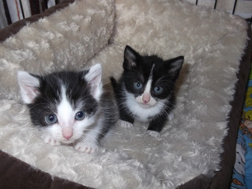Toby and Leo are two little boys. They are currently 4 weeks old and are expected to be ready at 8 weeks. Toby and Leo were found on waste ground with their mother. Toby and Leo also have another brother but he is very poorly and under veterinary care. The mother did not have any more milk for Toby and Leo so they are now being hand reared and are coming along great. They have started to eat for themselves but still need help to drink milk . They are just finding their feet and are having fun playing about in a safe environment. It would be nice for Toby and Leo to go together if possible. If you think you can give a loving home to Toby and Leo they can be booked. TOBY AND LEO ARE NOW BOOKED 🙂