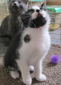 Amy is black and white and Shadow is all grey they are two females they are 10 weeks old very playful and are looking for a loving home. Amy and Shadow are now happily homed 🙂