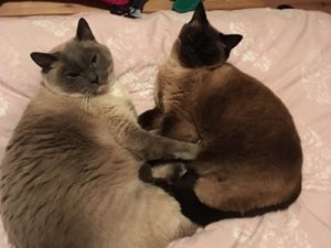 Trixi is the mum she is 8 years old and Yoda is the Son he is 6 years old both neutered. They are very loving gentle cats and love nothing more than to sit on your knee and being clapped. They are fantastic with young children, They are house-cats but do like out a couple of times a day but don’t wander far just like to sit in the garden so ideally somebody with an enclosed garden would be ideal. Must go together
