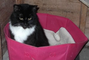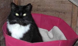 Missie is a black and white fluffy girl 9 years old. Missie will need a spot on every month as she has a skin aller