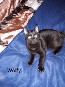 Frankie and Wolverine /Wolfy for short are mother and son. Frankie the mum is 2 years old and Wolfe is 4 months old. They have to be homed together as Wolfe mum is very timid and needs the support of her son to help her to come out of her shell. Frankie is very loving towards her son and adores him Frankie will needs to get to know you before she will let you clap her once she trust you she can be very loving and will let you rub her tummy so she will need someone with patients and a lot time to gain her confidence. Wolfy is a beautiful cuddly boy he is always full of purrs and loves getting petted he loves his toys and like to play and adores his mum.Update Frankie only took five days to come out her shell we think it was just the move and getting neutered that set her back she is now out and running about and paying with Wolfy .