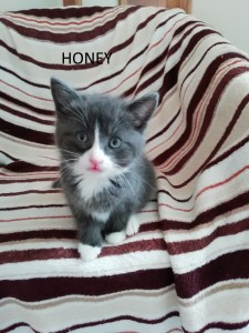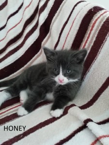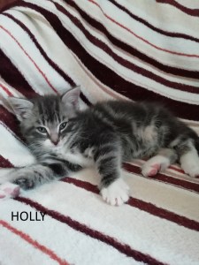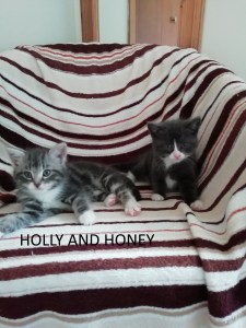 Holly and Honey are seven weeks old and will be ready for homing now. Holly and Honey’s mum is a feral rescued from the streets so Holly and Honey went to their fosterer for taming. Initially they were hissy and spitting but have now turned out to be very affectionate playful little bundles. Purring playing and loving the company of humans.