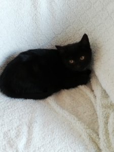 Because of my lack of social skills and my timidness I will not come to the person calling my name however I am getting used to being handled and enjoy sitting on the fosterer’s lap and to show my appreciation I purr constantly.