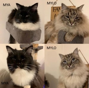These fur babies are the friendliest Ragdolls you will ever meet. They love cuddles and being picked up. The love their ears being rubs and their tummy’s. Sometimes we never have enough hands. They are brother and sister and also best friends. They like to explore during the day and sleep at night. They aren’t keen exploring in the dark they come in when called. Mya is the black mittens ragdoll and Mylo is seal lynx point ragdoll cats. They are excellent with children and families. They respect your space and won’t just jump up of you but welcome when they are invited for a cuddle. Mylo and Mya are 17 months old Birth date 20th October 2018 Mylo and Mya will not be split up they must go together. If you are intrested in Mylo and Mya please call Linda on 01382 330457 All home checks will be done. MYA AND MYLO ARE NOW HAPPILY HOMED.