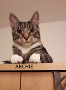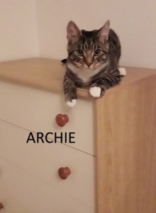 Archie is 5 months old and is one of the wheelie bin kittens found in Pitlochry last year. He never made the journey to the kitten foster Linda with his brothers and sisters as the person who found Archie unfortunately gave him away to a friend. Sadly this friend can no longer keep him. Archie is very playful, loves company and cannot be left for long periods of time. Archie can get a bit frightened with noises but calms down when he knows he’s not in danger. We don’t think Archie would be good with young children but should be fine with older children. When he first arrives in his new home Archie will be a bit timid but will come round very quickly when he becomes comfortable with his new surroundings. Archie is vaccinated and neutered. If you are interested in giving Archie a loving home please call Linda on 01382 330457 All home checks will be done .Is now happily homed.
