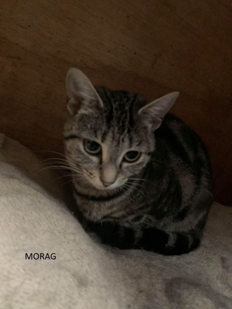 Yuke and Morag are brother and sister and are one year old. We are looking for people with experience in dealing with temperamental moggies. Yuke is happy go lucky but Morag is more reticent and a little nervous and will take a little bit more time to come round. We suspect that Morag’s current demeanour is due to her being confined in the cattery. A home with a garden for them would be great but you will need to keep them in for a while before letting them out. NO YOUNG CHILDREN. So if you would like to offer Yuke and Morag a loving please call SUE on 01337 840414. All checks will be done.