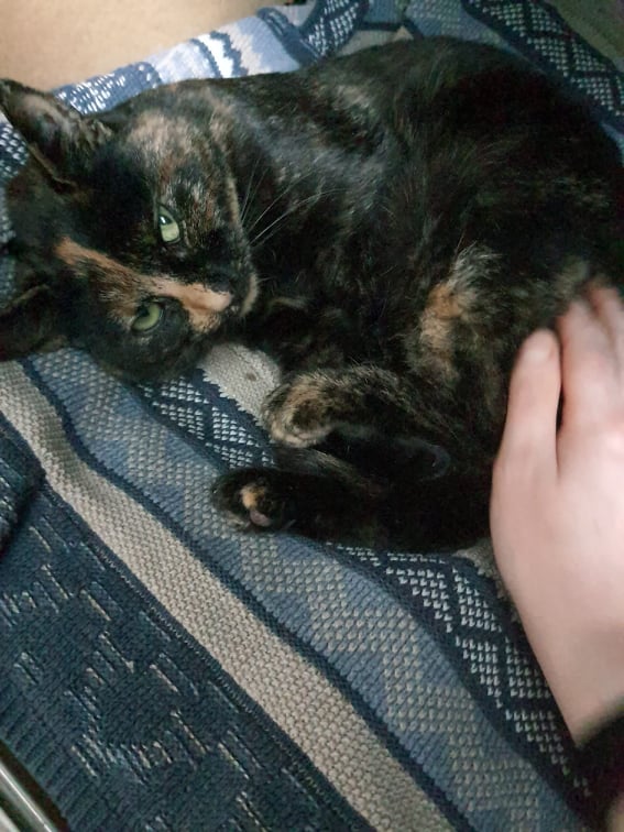 Maya is still very skittish, she gets scared of loud noises but she’s never aggressive. If anything, Maya will try to run away and hide or curl into a ball as if she wanted to disappear. After you start petting her with gentle but confident strokes, she soon relaxes and starts purring and exposing her belly. She uses her litter tray and scratching post without any problem. She’s also perfectly healthy, recently vaccinated and treated for worms and fleas. She doesn’t go out and right now doesn’t show any interest in it. She prefers comfortable, warm blankets and a chair or bed to watch the world go by.
