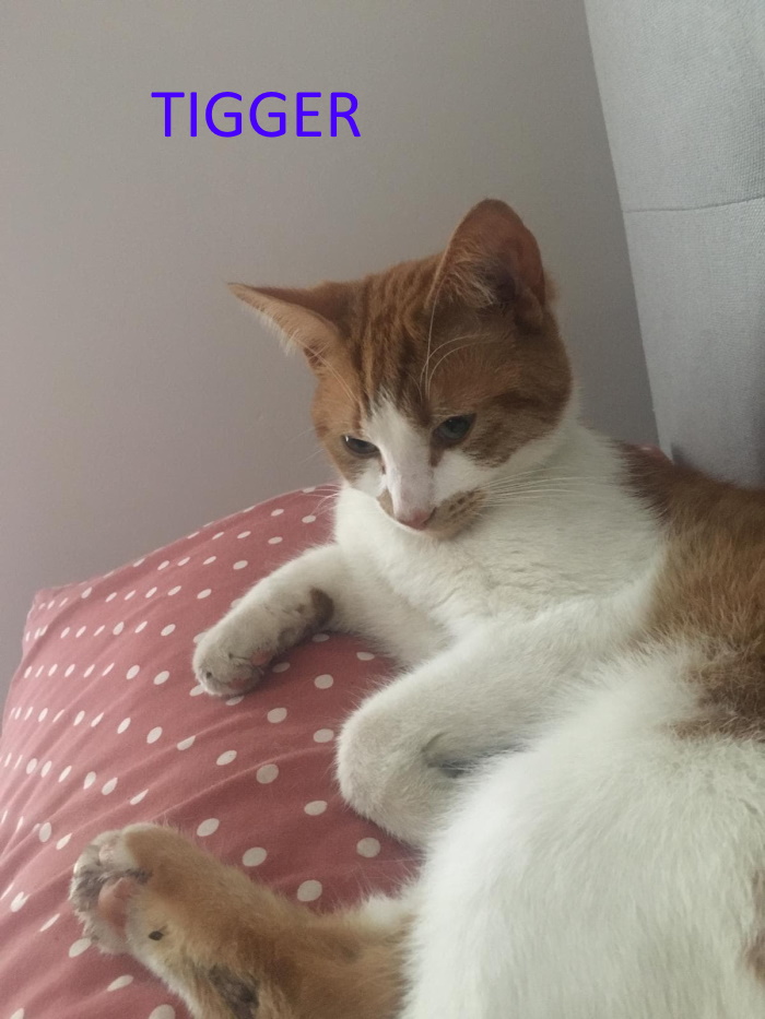 Tigger isn’t an overly affectionate soul but you can lift and pet him but he will start to wriggle if he isn’t in the mood. At times Tigger will come up for a pet and snuggle but on his terms only. Tigger would suit a house with older kids, somewhere he can free roam at leisure and come in and go as often as he likes. Access to a large garden would be preferable. Tigger eats a mixture of dry and wet food. He is approximately 3.5 years old and is chipped and neutered. Please be aware Tigger is scared of dogs. If you would like to give Tigger a loving home please call Sue on 01337 840414. All checks will be done. Tigger is now homed