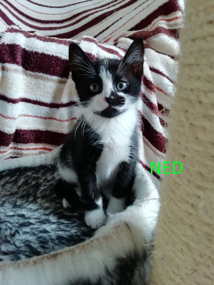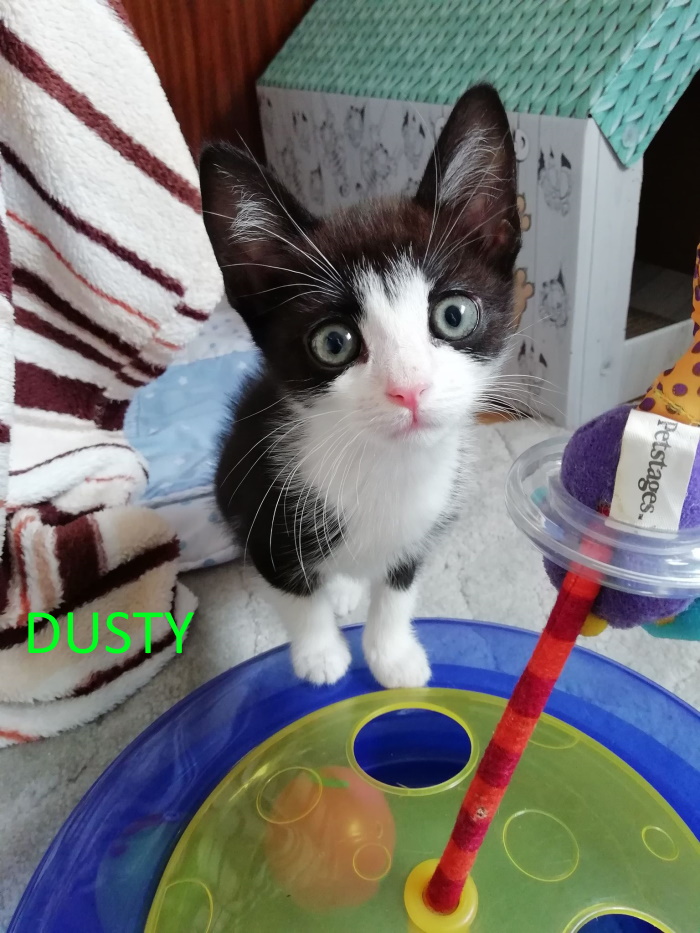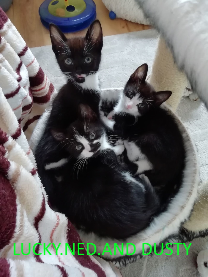 Ned. Dusty, and Lucky are 8 week old male kittens. They are very playful but when they first go to their new home they will be a bit subdued and frightened but in a couple of days they will settle down. No young children. Children from 10 year upwards would suit them better. They would like a garden to explore when they are old enough to go out which will be after they have been neutered at 5 months old. If you would like to give Ned or Dusty or Lucky a loving home please call Linda on 01382 330754. All checks will be done. HAPPILY HOMED
