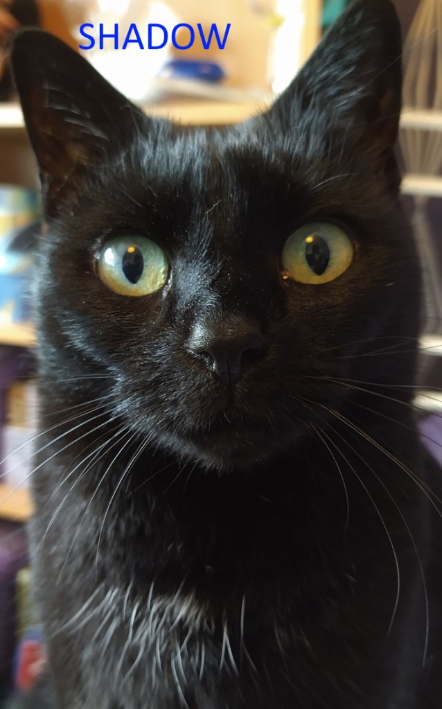 Shadow is an eight year old neutered female. She is very timid but with a bit of patience she will come out of her shell (or from under the bed!) and become affectionate, curious and quite opinionated. Shadow will headbutt you if you’re not patting her enough and meows back whenever you talk to her. Shadow is gentle and (mostly) quiet cat but will make it very clear when she wants something! Her favourite things are being stroked, eating treats, and chilling out with catnip.