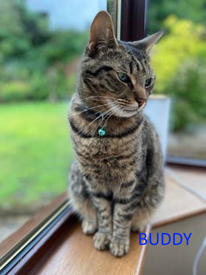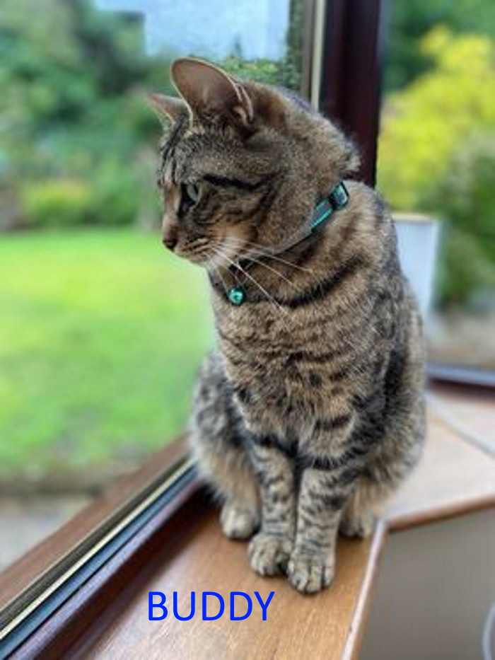 Buddy will be 5 in January, is neutered and chipped. Buddy is a very friendly. Buddy is good with children. He loves getting stroked but is not a sit on your knee cat. Buddy comes to life in evening to play with his toys. Buddy eats wet food and dry food and loves cat treats. Oh and he does bring little presents home on occasion so be prepared for that. We are not sure what he would be like with dogs as he has never been with them. Buddy will need a nice big garden to roam and plenty of space. NO FLATS PLEASE. If you would like to give Buddy a loving home please call Linda on 01382 330457 or Sue on 01337 840414 All checks will be done. BUDDY IS NOW HOMED