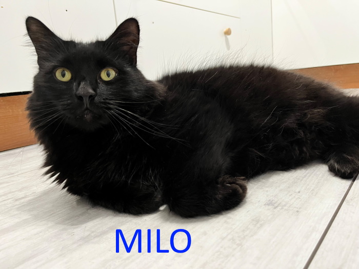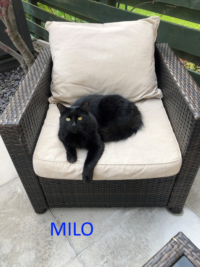 Milo is a 3year old male and is quite a long-haired black cat. His birth date is the 18th August 2019.