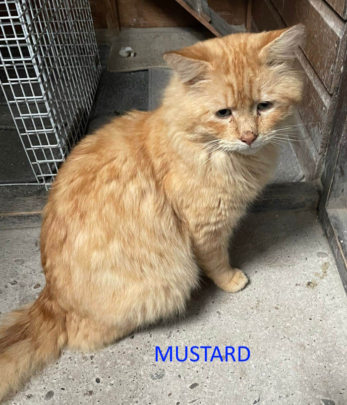 Mustard is about 2 to 3 years old he came in as a stray in a terrible mess. He was very smelly and his fur was very badly matted. We think Mustard had been wandering about the streets looking for a lady friend. He has now had a feline makeover and neutered by our vet and is now ready to go to his new home. Mustard will be timid to start with but after time he will settle. Mustard will need a garden to go into when he wants to. If you would like to give Mustard a loving home after living in the streets, please call Sue on 01337 840414. All checks will be done. MUSTARD IS NOW HOMED