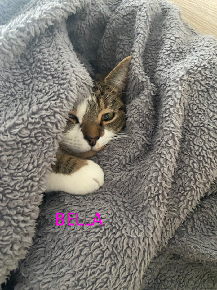 Bella is a 4 year old female tabby. Bella has lived with children and a dog and gets on well with both. Bella is extremely sweet and she is very calm and chilled and loves cuddles. Bella will need access to a garden as she is used to going outside. If you would like to give Bella a loving home please call Linda on 01382 330457. All checks will be done. BELLA IS NOW HOMED