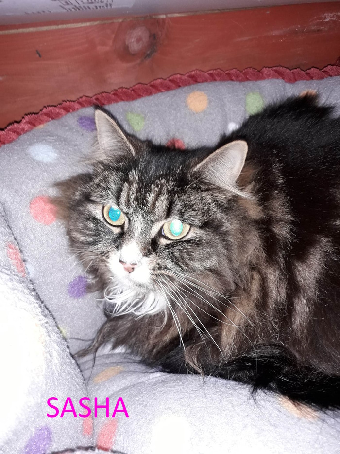 We are reposting Sasha. Sasha is a two year old long haired sweet natured little girl who came into foster care almost 3 weeks ago and from being terrified of everything and not knowing how to react with people she has now become a very happy girl who loves company and playing with her toys. She is also very content to lay on your lap purring and will fall asleep there. Sasha has also recently found her voice and is greeting her foster mum with gurgles. Thanks to the hard work of our fosterer, it has taken a lot of time and effort to get her to this point, having previously not interacted with anyone or anything nor been shown any affection since she was a kitten Sasha is now ready to go to a new home which she so deserves. Sasha would be good with older children. NO DOGS OR OTHER CATS. If you would like to give Sasha a loving home, please call Linda on 01382 330457. All checks will be done. SASHA IS NOW HAPPLIY HOMED