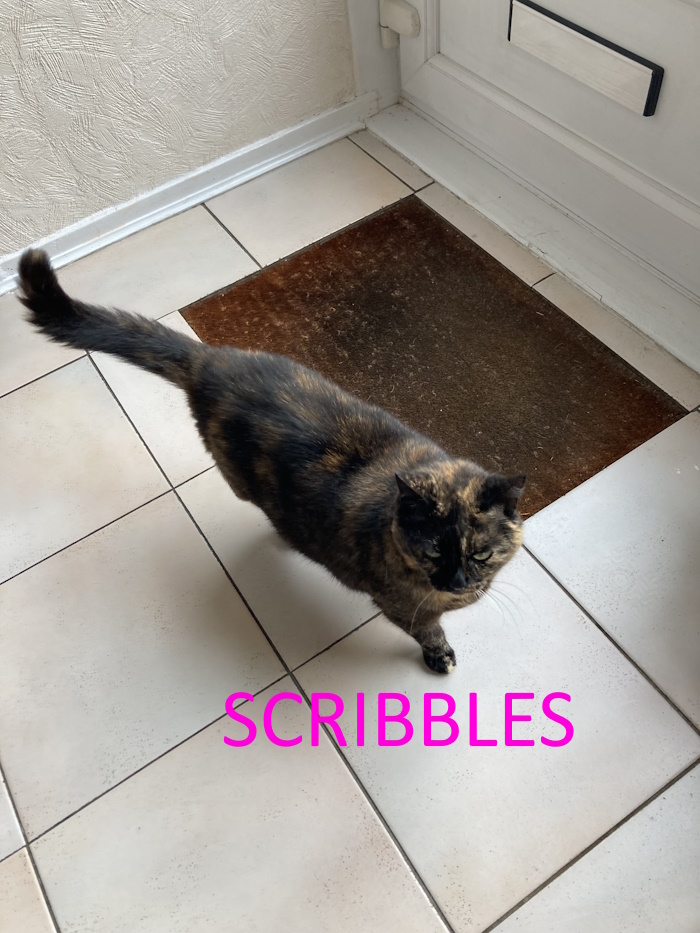 Scribbles is a lovely cat who does not live up to the Tortoiseshell reputation. She is 12 years old female and is the sweetest, kindest cat ever. Scribbles has been a fantastic companion and would benefit from being with an older person with no children or other animals. Scribbles has been neutered. Scribbles deserves a happy home and would make a perfect companion for an elderly lady or gentleman. Scribbles loves outdoors and comes in for food and a pet. She is not fussy what food is offered but not keen on lumps. If you would like to give Scribbles a loving home please call Linda on 01382 330457. All checks will be done. SCRIBBLES IS NOW HOMED