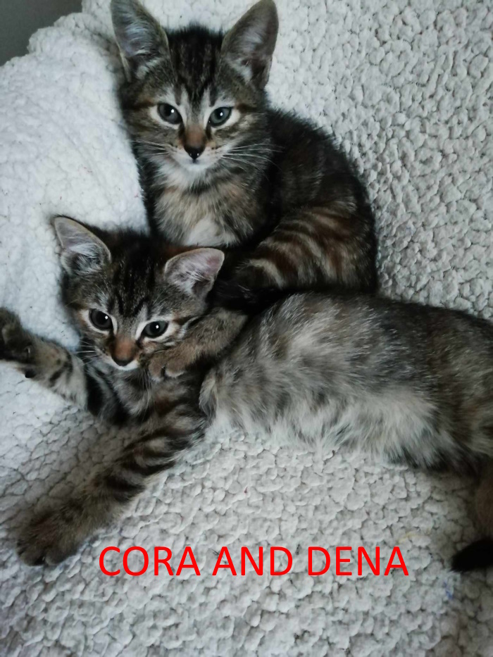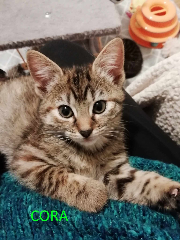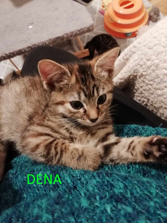Cora and Dena are sisters and are 8 weeks old. We would prefer that they are homed together as they have formed a really strong bond. Jena is from another litter and is 8 weeks old. Jena is a bit timid but she will soon come round. At the moment she is finding things a bit over whelming. Unfortunately, Jena would not be suitable for a home where there are young children. If you would like to give Cora and Dena and Jena a loving home please call Linda on 01382 33057. All checks will be done. All are now happily homed.