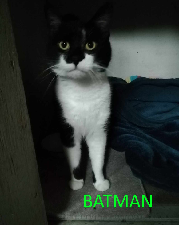 Batman is a 2 year old male. Batman is a lovely boy but we are not sure what he would be like with young children or dogs. Batman will need access to a garden. Batman is neutered and vaccinated. If you would like to give Batman a loving home please call Sue on 01337 840414. All checks will be done. BATMAN IS NOW HOMED