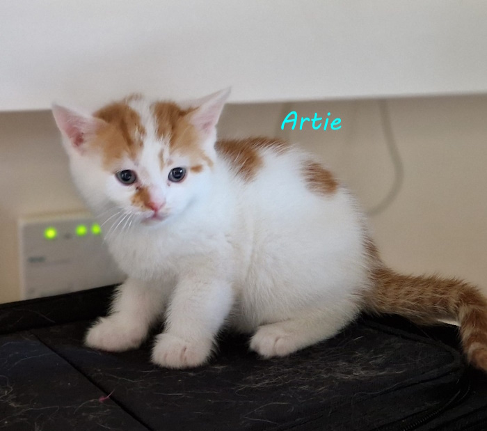Artie and Tallie are brother and sister. They are only six weeks old but will be ready for homing in a few weeks. We would like then to go together as they are very bonded. Please do not ask us to separate them. Artie and Tallie are very playful kittens and full of mischief. If you would like to book these kittens please call Linda on 01382 330457. All checks will be done. NOW HOMED
