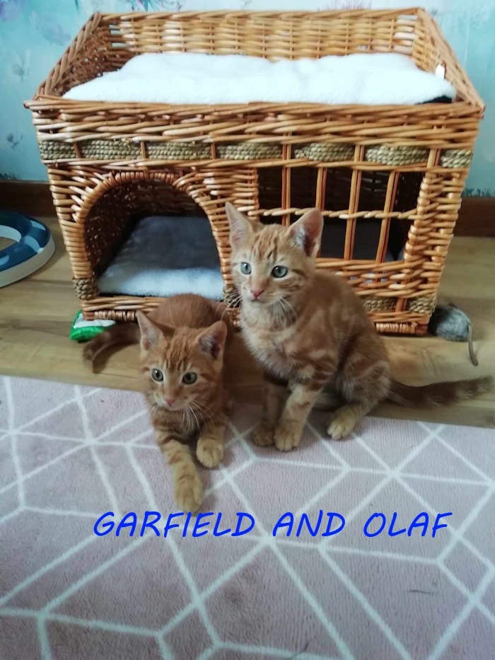 We are reposting Garfield and Olaf as we thought we had a home for them but it has fell through without the person seeing them. Garfield and Olaf had a home to go to but due to a change in circumstances it has fallen through. Garfield and Olaf are 11 weeks old. Garfield and Olaf are brothers and must go together. Garfield and Olaf came in to the Sanctuary as semi ferals and Linda has been working on them and they are coming along nicely. They will go back a bit when they go to their new home but should come round once settled. Garfield and Olaf love to play beside you but when you stand up it does frighten them but that should go in time. If you would like to give Garfield and Olaf a loving home please call Linda on 01382 330457. All checks will be done. Garfield and Olaf are now happily homed.