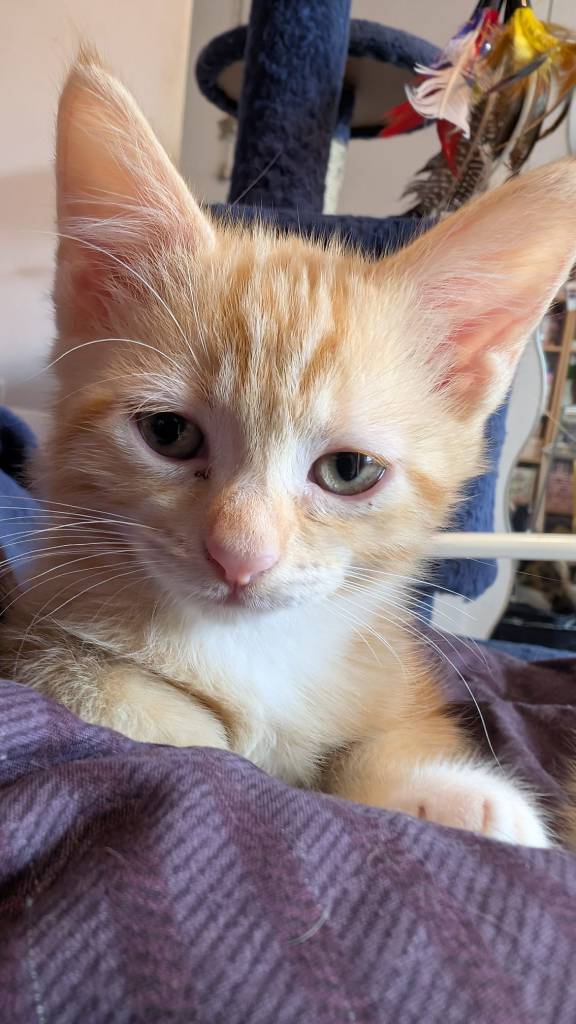 PLEASE READ ALL INFO BEFORE CONTACTING US. Star, 2 years old. Her name suits her – she thinks the world revolves around her! She loves attention but is fine chilling out by herself. Enjoys catnip and sleeping on a pillow next to me (so I can stroke her the second I wake up!).Female kitten, almost 11 weeks. She’s got a serious face but loves exploring and playing. She’s always been the first one to discover new things, from toys to a kitten-sized hole in my cupboard! She enjoys going under the duvet and chilling out. MUM AND DAUGHTER MUST TO GO TOGETHER. Phone Linda on 01382 330457. All checks will be done. NOW HAPPLY HOMED.