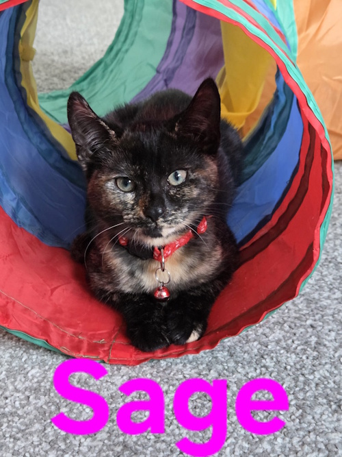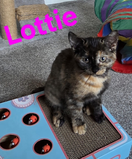 Please click on photo to see all in before phoning. Meet Lottie & Sage – Two Tortie Treasures Looking for Love! These beautiful 11-week-old sisters are a bonded pair with stunning tortoiseshell coats and personalities as unique as their markings. Lottie is the bold adventurer of the duo – curious, playful, and always ready to explore or get a cuddle. Sage is a gentle soul with a shy streak, but don’t be fooled – she’s a chatty wee thing who loves to express herself with the sweetest little meows. Both girls have had their vaccinations and are in good health, ready to start their next chapter in a loving forever home. Because they’re so closely bonded, they must be adopted as a pair – double the cuddles, double the joy!. Please do not ask us to separate this pair. If you would like to give Lottie and Sage a loving home please call Linda on 01382 330457. All checks will be done. LOTTIE AND SAGE ARE NOW HOMED