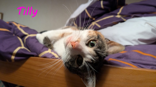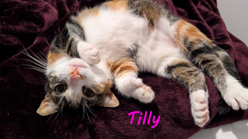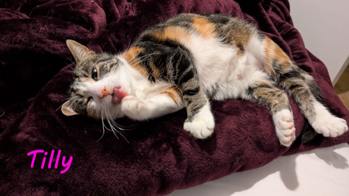 Please click on photo to get all info before phoning. Tilly is a 4 year old neutered female cat. Tilly would like to be allowed outside and live in a home with no kids and no other pets. Tilly has a strong personality Tilly can be incredibly affectionate and playful but she does like to bite when she’s excited (or simply a firm chomp to get my attention!). It’s never aggressive or hard enough to break the skin or leave a mark, but it’s important that she can find someone who can handle her worst trait! Tilly is currently on a diet and would like someone who would continue that (at least, the vet would, Tilly would really like a 100% Dreamies diet!). Tilly enjoys cardboard scratching boards, sleeping on top of people at night, scampering around the house when she’s got the zoomies, and eating lots of Dreamies. Tilly has polydactyly – it doesn’t impact her but you might start regretting any “if cats evolved thumbs” jokes! If you would like to give Tilly a loving home please call Linda on 01382 330457. all checks will be done.