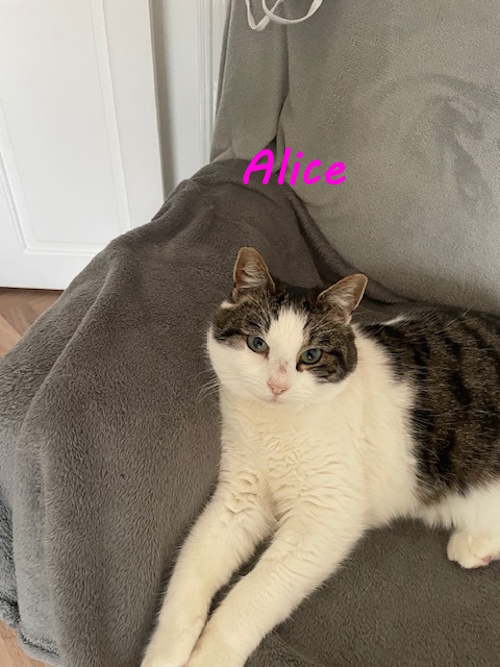 Please click on photo to see all info before phoning. Alice we are not sure about her age but we think she is between 8 and 10 years old. Poor Alice was left behind by her owners when they moved away and many of the neighbours were feeding her until she came into our care. Alice is a very friendly lady and loves cuddles and sitting on your knee. Alice is to be a house cat or she can go out if it is very safe place. If you would like to give Alice a loving home please call Linda on 01382 330457.All checks will be done. ALICE IS NOW HOMED