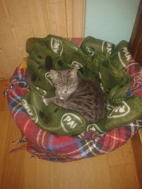 Gina is now happily homed! Nina (formally Gina) relaxing in her new basket after tiring herself out playing. Settling in 4 days after leaving her brothers and sister.